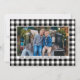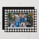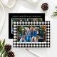 Envie cartões de natal com nossos cartões com fotos elegantes rústicos, com um padrão clássico de verificação/ xadrez de búfalos preto e branco, enquadrando sua foto de Natal horizontal favorita (3 x 5) na frente, com dois espaços extras de fotos quadradas no verso. Personalize o texto personalizado na frente e atrás com um "Feliz Natal" ou outras saudações, o sobrenome de sua família, o ano, uma mensagem pessoal e os nomes de seus familiares. Crédito da fotografia: SunFeixe Fotografia www.facebook.com/SunbeamPhotography