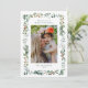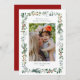 Este elegante cartão de feriado fotográfico apresenta uma moldura de Natal em aquarela adornada com bagas ocas, ramos de pinheiro e verde botânico, com texto personalizável. Mande alegria de Natal para a família e amigos.