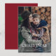 Este simples e elegante cartão de Natal diz "Feliz Natal" em uma mistura de texto moderno em negrito e caligrafia clássica, sobre uma sobreposição de foto sobre sua foto de família favorita. O verso do cartão é uma cor vermelha merlot rica e moderna.