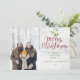 Lindo aquarela de musgo pendurado sobre elegante tipografia de Feliz Natal nessas elegantes cartões de fotos de férias. Personalize a mensagem, foto, nome da família e data. Criado por Thisisnotme©