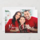 Este cartão de feriado simples e na moda diz "Feliz Natal" em tipografia branca e moderna escrita à mão. Há espaço para duas fotos da sua família; a que está atrás tem uma camada com espaço para você adicionar uma mensagem pessoal adicional.
