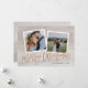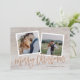 Barato Cartões de foto de Natal impressos personalizados com modelos simples para personalização. Este design de chic rústico apresenta um modelo de 2 fotos com texto faux rosa dourado do script em um fundo de aparência de madeira. Personalize-o com suas fotos, nome da família, ano ou outro texto personalizado. Por favor, note que as folhas falsas e o fundo da madeira fazem parte do design impresso - as cartas não têm folha metálica real nem madeira. O verso tem espaço para fotos e texto adicionais. Use as ferramentas de design para alterar as fontes de texto e as cores, adicionar mais fotos e criar uma única design de Cartões de foto de Natal.