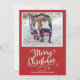 Este design apresenta um feliz Natal, com uma foto, fundo vermelho com elegante tipografia de script, com caligrafia, e um simples cartão com fotos minimalista, mínimo, de feriado, com belíssimas letras bonitinhas.