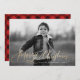 Envie cartões de natal para a família e amigos com este cartão com fotos de Natal feliz. O cartão de feriado moderno mostra sua foto horizontal favorita de sangramento de cheio com "Feliz Natal" em uma folha de ouro falso, escrita à mão. Personalize a frente do cartão com fotos de férias adicionando seu nome e o ano. A placa se reverte para um fundo d'água de xadrez vermelha e preta.