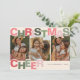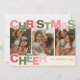 Bem-vindos ao feriado festivo do Natal com um cartão sincero! Apresentando uma fonte divertida em tons cor-de-rosa e verde que diz "Alegria de Natal", este cartão trará alegria aos seus amigos e família. Personalize-o com seu nome e ano, e adicione 3 das suas fotos favoritas - e deixe os desejos calorosos da estação tocar! Celebre o Natal com um cartão que certamente difunde alegria e alegria.