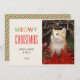 Cartão De Festividades Feliz Natal, Gatinho Gelado, Foto Vermelho e Verde