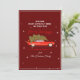 Feliz Natal dos tempos mais difíceis, cartão de férias tradicional e moderno com roteiro branco e vermelho, um carro da família trazendo para casa um gráfico da árvore de Natal e seu nome da família embaixo em um fundo vermelho escuro. Do lado de trás você pode inserir sua própria citação de Natal aconchegante ou simplesmente sair como está. Você pode alterar o texto e inserir sua própria foto de feriado usando o recurso "personalizar" à direita da página. Feliz Natal e Obrigados Para Ver.