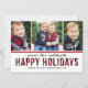 O cartão com fotos de feriados felizes moderno inclui três (3) fotos e texto branco em negrito que podem ser personalizados com sua saudação preferida, sobrenome, membros da família e ano. Apresenta um padrão de xadrez / verificação de búfalos vermelho e preto rústico nos lados frontal e traseiro da placa. Crédito das fotos: Duas Fotografias de Peixe www.twofishphoto.com