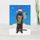 Ficando na neve fria com flocos de neve caindo por toda parte, este adorável gato preto em um chapéu de Papai Noel é uma maneira divertida de desejar a alguém um Natal muito Feliz!