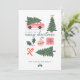 Celebre a época mágica e festiva de férias com o nosso cartão de feriado. A design apresenta a nossa design tipográfica "Desejamos-lhe um Feliz Natal" com um divertido retrógrado cor-de-rosa, um carregando de Natal, árvores de Natal, sagrado, ornamentos, presente e fita. Personalizado com o seu monograma inicial colocado na frente da carrinha cor-de-rosa e a assinatura da sua família e ano. O lado inverso apresenta o nosso design de padrão de van retrógrado rosa. Todas as ilustrações são obras de arte originais desenhadas à mão por Moodthology Papery.