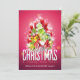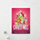 Um cartão de Natal simples personalizado com seu nome e mensagem no verso. Criado com uma ilustração de Natal legal. O texto diz Feliz Natal e Feliz Ano Novo. Criado com um monte em forma de árvore de presentes com flocos de neve festivos, estrelas, bolas de Natal e faíscas luminosas. O fundo é uma cor rosa avermelhada vibrante.