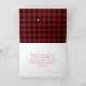 Texto "Tudo Feliz" na xadrez de búfalos vermelho e preto com corda leve da festa.