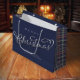Cartão De Festividades Feliz Natal - Script de Caligrafia Marinho Xadrez