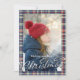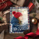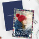 Esta design apresenta uma fotografia clássica de Natal Feliz, xadrez Azul e Vermelho de inverno, um roteiro de caligrafia na moda, uma imagem de família, típica, clássica mínima minimalista e simples, um modelo de layout fotográfico, com tipografia clássica de caligrafia rico, um cartão de saudação de Natal, um cartão com fotos clássico sofisticado e elegante, tradicional padrão tradicional clássico de tartan