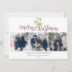 Bonito névoa de aquarela pendura sobre o roteiro de ouro cômico A tipografia de Feliz Natal nestes cartões de natal elegantes. Personalize a mensagem, 3 fotos, nome da família e data. Projetado por Thisnotme©
