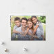 Um simples cartão de Natal plano horizontal, com um design mínimo de espaço para 4 fotos. O design é acentuado com o tradicional script de estilo manuscrito "Feliz Natal" em cima da foto. O verso oferece texto personalizado para que você adicione sua própria mensagem pessoal.