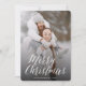 Feliz Feliz Natal Em Um Cartões de foto de Natal Tendente E Moderno De Roteiro De Caligrafia. Cartões de foto de Natal ou feriado moderno com uma fotografia de perda de cheio de solteiro em um layout simples com design frontal e traseira. Concebido por gordura*fa*estanho. Fácil de personalizar com seu próprio texto, foto ou imagem. Para pedidos personalizados, entre em contato direto com o . Aplicam-se taxas personalizadas. www.zazzle.com/fat_fa_tin www.zazzle.com/color_therapy www.zazzle.com/fatfatin_blue_knot www.zazzle.com/fatfatin_red_knot www.zazzle.com/fatfatin_mini_me www.zazzle.com/fatfatin_design www.zazzle.com/fatfatin_ink