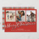 Esta design apresenta uma fotografia clássica de Natal Feliz, uma fotografia clássica de Natal feliz, uma imagem clássica de Natal feliz, uma coleção de fotos múltipla três, um roteiro de caligrafia de na moda prata, uma fazenda de xadrez verde vermelha, um estilo de país divertido festivo, uma fotografia de família tradicional, um cartão de férias horizontal de cheio, uma tipografia de caligrafia clássica, um cartão de saudação de Natal com dois lados