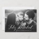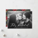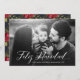 Este simples cartão de fotos de na moda apresenta texto elegante, lendo, "Feliz Navidad" e um padrão de poinsettia de aquarela no verso.