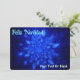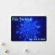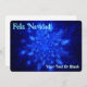 Um enxame de flocos de neve fractais azuis. O texto em espanhol, que lê "Feliz Navidad", aparece em azul e branco brilhantes. Adicione seu próprio texto adicional.