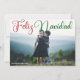 Cartão de foto moderno da família Feliz Navidad com bela caligrafia em vermelho e verde. Esses belos cartões de fotografia de Natal em espanhol apresentam uma escrita linda e seu nome em branco sobre a imagem horizontal completa.