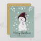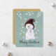 Este cartão de Natal muito bonito mostra um pequeno bonitinho feliz curtindo a neve. O texto "Feliz Natal" é definido com uma letra manuscrita lúcida.