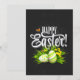 Um vibrante cartão de Páscoa com ovos coloridos aninhados em grama verde exuberante com flores alegres. A câmera se aproxima lentamente dos ovos, destacando seus desenhos intrincados. Iluminação suave e quente realça a atmosfera festiva, criando um clima alegre. O fundo é sutilmente texturizado, adicionando profundidade à cena. O estilo geral é lúdico e brilhante, perfeito para celebrar o feriado.