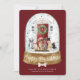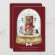 Cartão de Natal divertido e festivo perfeito para empresas de cuidados a animais de estimação, como babá, camponês de estimação, serviços de assistência a animais de estimação, adoção de animais de estimação, veterinário e muito mais! Design apresenta nossa porta festiva e acolhedora de aquarela decorada para a temporada de festas com uma coroa de folhagem verde dentro de um lindo falso globo de neve ouro. Estrelas de ouro falsas e a neve em queda acrescentam um olhar mágico a este cartão de férias de negócios para os cuidados com animais de estimação no globo da neve. Cães bonitos estão sentados do lado de fora da porta da frente e vestindo chapéus e lenços festivos divertidos. "Feliz Natal" aparece na base do globo de neve na caligrafia manuscrita. Personalize com o seu nome comercial e o texto opcional arquivado na porta. O verso apresenta um espaço reservado para fotos para exibir sua própria foto comercial, juntamente com um cartões de natal, nome e nome de empresa personalizados. Todo trabalho de arte é obra de arte original de Moodthology Papery.