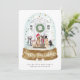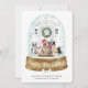 Cartão de Natal divertido e festivo perfeito para empresas de cuidados a animais de estimação, como babá, camponês de estimação, serviços de assistência a animais de estimação, adoção de animais de estimação, veterinário e muito mais! Design apresenta nossa porta festiva e acolhedora de aquarela decorada para a temporada de festas com uma coroa de folhagem verde dentro de um lindo falso globo de neve ouro. Estrelas de ouro falsas e a neve em queda acrescentam um olhar mágico a este cartão de férias de negócios para os cuidados com animais de estimação no globo da neve. Cães bonitos estão sentados do lado de fora da porta da frente e vestindo chapéus e lenços festivos divertidos. "Feliz Natal" aparece na base do globo de neve na caligrafia manuscrita. Personalize com o seu nome comercial e o texto opcional arquivado na porta. O verso apresenta um espaço reservado para fotos para exibir sua própria foto comercial, juntamente com um cartões de natal, nome e nome de empresa personalizados. Todo trabalho de arte é obra de arte original de Moodthology Papery.