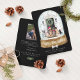 Cartão de Natal divertido e festivo perfeito para empresas de cuidados a animais de estimação, como babá, camponês de estimação, serviços de assistência a animais de estimação, adoção de animais de estimação, veterinário e muito mais! Design apresenta nossa porta festiva e acolhedora de aquarela decorada para a temporada de festas com uma coroa de folhagem verde dentro de um lindo falso globo de neve ouro. Estrelas de ouro falsas e a neve em queda acrescentam um olhar mágico a este cartão de férias de negócios para os cuidados com animais de estimação no globo da neve. Cães bonitos estão sentados do lado de fora da porta da frente e vestindo chapéus e lenços festivos divertidos. "Feliz Natal" aparece na base do globo de neve na caligrafia manuscrita. Personalize com o seu nome comercial e o texto opcional arquivado na porta. O verso apresenta um espaço reservado para fotos para exibir sua própria foto comercial, juntamente com um cartões de natal, nome e nome de empresa personalizados. Todo trabalho de arte é obra de arte original de Moodthology Papery.