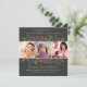 O cartão com fotos quadrado na moda apresenta a redação "Tenha a si mesmo uma Feliz Natal Pequeno" em estilos de estilo moderno com texto personalizado para o nome do bebê, data de nascimento e estatísticas. Uma borda de feriado floral de colly, bagas, folhas, pinecones e galhos enquadra suas três (3) fotos favoritas de recém-nascidos. Esquema de cores: cinzas de carvão vegetal / preto com azul-aqua vermelho, púrpura empoeirada, verde, castanho e mutado.