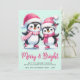 Que este adorável cartão verde rosa e menta com patinadores de gelo de pinguim bonitos ajude a enviar aos seus entes queridos os desejos mais calorosos e saudações. Este cartão festivo de Natal com o ditado "Feliz e Brilho" tem um texto de modelo, onde você pode digitar suas saudações, nome da família e ano. No verso, há um calendário de 2025 (domingo a sábado) que torna as cartas práticas para todo o ano. O calendário com meses na fonte do script é colocado sobre um fundo verde da casa da moeda.