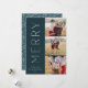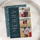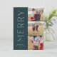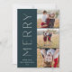 Um design de cartão de feriado chic e elegante com três fotos alinhadas à direita em um layout vertical. A "Feliz" aparece ao lado da sua foto, em um tipo moderno e subestimado. Personalize com seu nome de família e cartões de natal personalizado abaixo para o perfeito toque final para esses cartões com fotos minimalistas legal do Natal de 2021.
