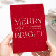 Cartão de férias moderno com "Feliz e Brilho", apresentado em letras brancas e fundo vermelho com sutis pontos brancos (neve). Personalize a frente do cartão de feriado não fotográfico com o nome da sua família e o ano em caracteres brancos. O cartão se reverte para exibir sua mensagem pessoal em letras vermelhas ou deixar a vazio de escrever sua própria mensagem.