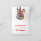 Guitarras de Natal com cartão de feriado alegre e colorido. Vamos balançar esta estação festiva com estas divertidas e coloridas jazzy, guitarras vestindo os chapéus de Papai Noel. Guitarras acústicas, guitarras elétricas e guitarras semiacústicas designs coloridos psicodélicos para trazer alegria festiva de férias aos amigos músicos guitarristas e estrelas de rock. Esse instrumento musical engraçado, um cartão de natal de feriados feliz, pode ser facilmente personalizado usando os modelos. Arte original da artista Catherine Sweetman