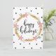 Envie este cartão de Natal com um design divertido em poinsettias e frutas vermelhas de Natal prateadas, rosadas e douradas. Personalize adicionando sua foto favorita.