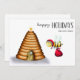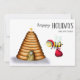 Cartão de Natal empresarial único com uma abelha Papai Noel indo para uma colmeia para deixar os presentes. Ótimo para adicionar um toque extra aos seus clientes no seu negócio de Mel! Ilustrado e projetado por Patricia Alvarez.