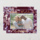 Felizes Festas em texto cursivo preto. Fundo cintilante burgundy com estrelas e orbes de luz douradas. Adicione a foto da sua família, nome e mensagem opcional no verso. Se você não quiser adicionar uma mensagem, exclua o texto (na seção personalizar) ou apenas mude para Natal 2020.