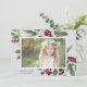 Mande cartões de natal para amigos e família em estilo chic com nossos cartões com fotos elegantes. As imagens graciosas da folhagem de cor d'água pintada e as bagas vermelhas profundas moldam sua foto, com sua saudação personalizada (mostrada com "Feriados Felizes") e seu(s) nome(s) familiar(s) preso(s) no canto inferior esquerdo. Cartões ao contrário revelam um padrão botânico de inverno correspondente.