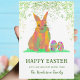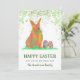 Deseje aos seus amigos e família uma Páscoa maravilhosa com este belo coelho colorido de Páscoa e ovos em lindas cores brilhantes com folhagem verde. Fácil de personalizar usando o modelo. Arte original moderna da artista Catherine Sweetman