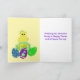 Script roxo felz pascoa. Pato amarelo bonito. O fundo tem flores amarelas da íris. Arte original, Verso, Design de fotografia © TamiraZDesign.