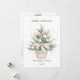 Este design apresenta uma ilustração aquarela da árvore de Natal com baubles e cones de pinho no pote do estilo vintage. Árvore de Natal enfeitada com confete ouro esverdeado. No verso, há uma imagem delicada de árvores de abetos e de cabana de madeira.