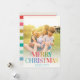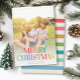 Cartão de Feriado Moderno lendo MERRY CHRISTMAS em um design de tipografia brilhante e tenente com sua foto familiar favorita emoldurada com um raio de sol amarelo.
