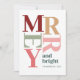 Cartão de Natal feliz e Brilhante com cores ousadas e modernas como burgundy, rosa-pincel, verde-sábio e ouro mudado, este cartão é perfeito para enviar saudações alegres. A tipografia elegante cria um design único e atraente, enquanto as listras coloridas no fundo adicionam um toque lúdico. Personalize com seu nome de família e ano para torná-lo seu. Ideal para espalhar alegria festiva com uma reviravolta contemporânea, este cartão é perfeito para famílias que procuram enviar uma mensagem de feriado chique e vibrante.