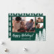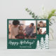 Deixe-o nevar com esta rica coleção de feriados de tom de joia. Fotos personalizáveis são o foco do design, acentuado com pinheiros brancos nos cantos. A neve cai no fundo para adicionar textura. Uma saudação personalizável em uma escritura de fazenda adiciona um sentimento caprichoso ao design. Disponível em azul marinho, creme, verde-pinho e preto-e-quadro. Mande as bênçãos de Natal da sua família com este cartão festivo.