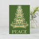 Mantenha contato com aqueles que você ama nesta temporada de férias, enviando-lhes este cartão. Este cartão de Natal apresenta um fundo verde festivo com uma árvore de Natal de ouro estilizada com uma estrela no topo. O texto na frente diz "PEACE". Coloque sua própria saudação ou mantenha o texto popular e de tendências fornecido para sua conveniência.