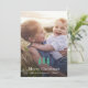 Padrão de Natal elegante e rústico de pinheiros verdes com tipografia branca Feliz Natal, seu nome e foto.