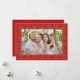 Uma elegante borda de floco de neve. Este modelo clássico de Cartões de foto de Natal apresenta um layout de foto 1. Um na moda festivo design com fundo vermelho. Um estilo simples e moderno para desejar Felizes Férias aos seus amigos e família. Esta design apresenta a foto de Natal 1, um, floco de neve elegante padrão verde-vermelho, moderno e simples família rústica, tendências limpas de imagem familiar, tipografia do amor pela paz alegre amor, moderna e elegante tendência simples, paz e alegria típica, letra de script de caligrafia moderna, fotografia familiar simples e mínima, carta de cartões de natal elegante.