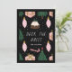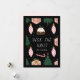 Convés festivo, o cartão de Natal das salas apresenta uma fonte tradicional escrita à mão e caixas de presente coloridas ilustradas e ornamentos num fundo negro moderno. A parte de trás da doce saudação é um bonito rosa pastel.