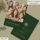 Um Cartão de Feriado de Foto Empresarial, verde-escuro elegante e ouro. O cartão de cartões de natal comercial em estilo clássico apresenta uma foto personalizável do grupo com sotaques verdes e dourados escuros. Na moda e design elegante. Do lado oposto, há um ouro floco de neve com cartões de natal ou parabéns corajosos para colegas e parceiros.